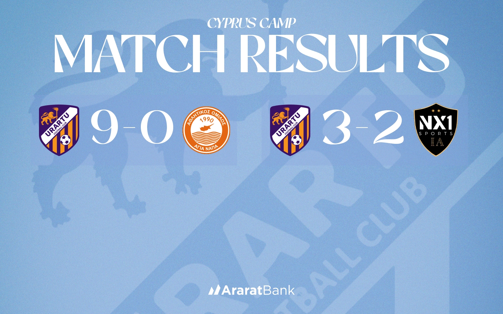 «ՈՒՐԱՐՏՈՒ-2» -Ը ԱՆՑԿԱՑՐԵՑ ԸՆԿԵՐԱԿԱՆ ՀԱՆԴԻՊՈՒՄՆԵՐ ՀԱՎԱՔԻ ՇՐՋԱՆԱԿՆԵՐՈՒՄ«Ուրարտու-2»-ը Կիպրոսում կայանալիք հավաքի շրջանակներում անցկացրեց 2 ընկերական հանդիպում։
